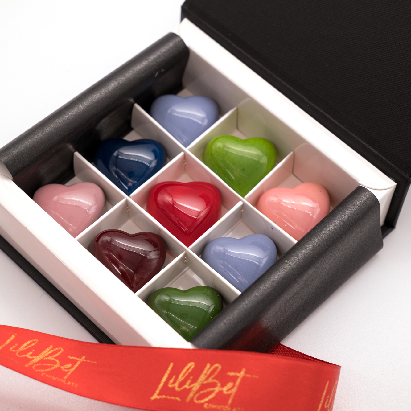 La nostra elegante confezione da nove pezzi offre una selezione di gusti irresistibili, perfetta per sorprendere chi ami con un pensiero dolce e raffinato. Rendi speciale il tuo San Valentino con un regalo che conquista il cuore… e il palato!